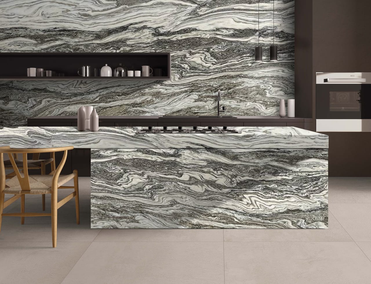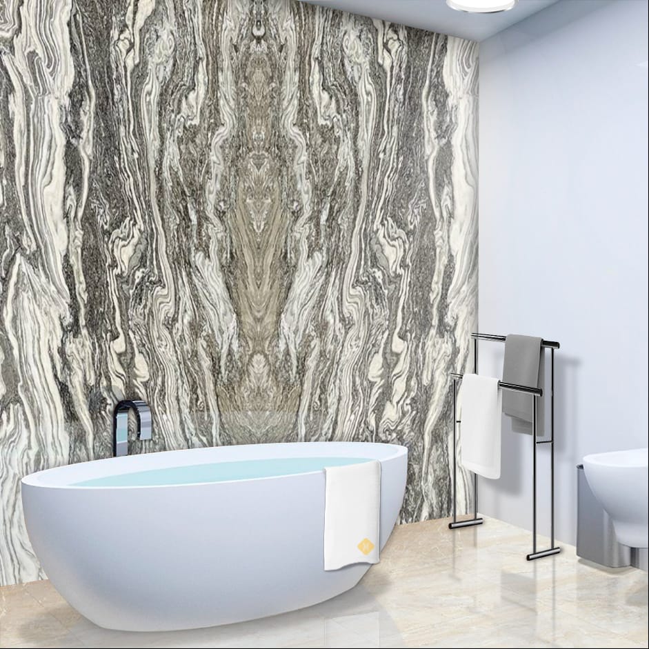 The Avalanche Brazilian Marble is a stunning masterpiece of natural luxury, showcasing a crisp, white background with bold, gray veining that cascades like a winter avalanche. Its dramatic beauty adds a touch of elegance and sophistication to any space, perfect for those who crave a luxurious and dynamic aesthetic. With its polished finish and captivating patterns, Avalanche marble exudes refinement, grandeur, and timeless beauty, transporting you to a world of natural wonder and luxury. Its beauty is both breathtaking and awe-inspiring.