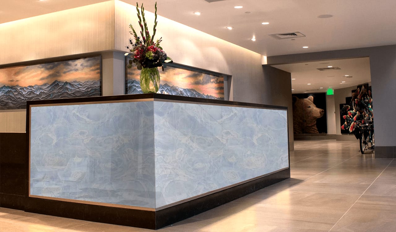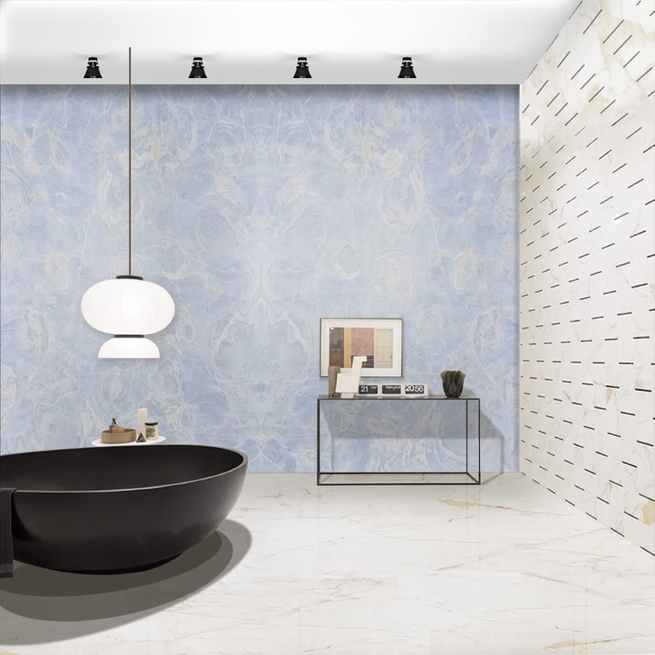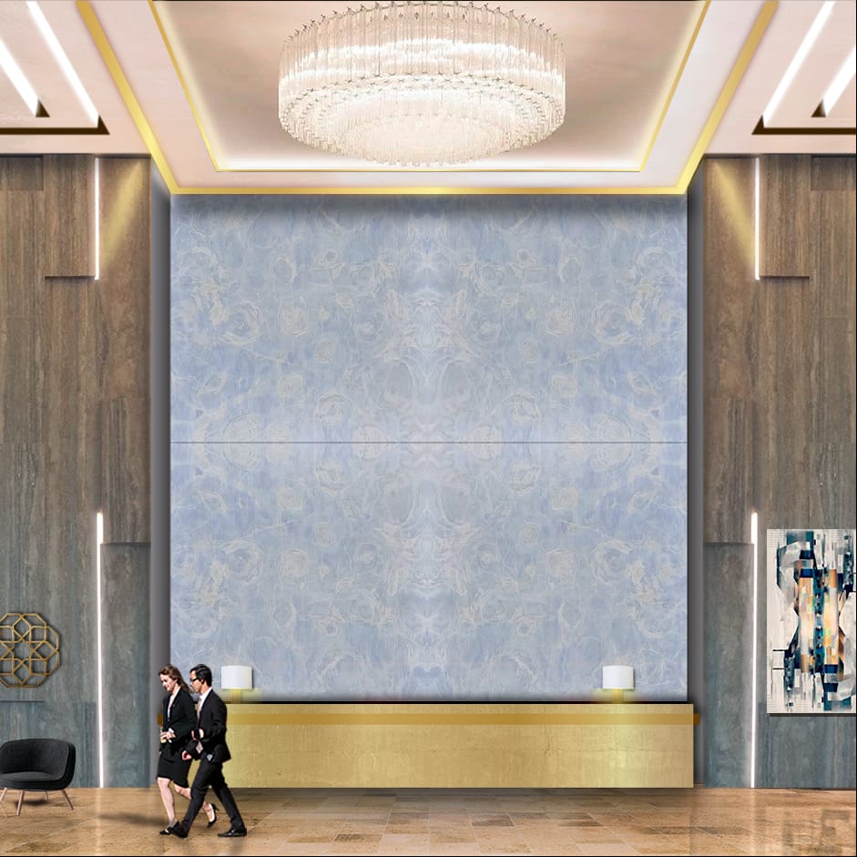 The Azul Aqua Dolce Brazilian Marble is a mesmerizing masterpiece of natural luxury, showcasing a soothing blend of soft blues and whites, with intricate patterns that evoke the gentle lapping of waves against a serene shoreline. The polished finish adds a touch of sophistication and elegance, perfect for high-end interiors where luxury and tranquility reign. This exquisite marble exudes calmness, serenity, and natural beauty, its subtle nuances and intricate patterns creating a sense of peacefulness and relaxation. The Azul Aqua Dolce’s unique blend of blue tones and delicate veining transport you to a world of coastal luxury and sophistication, elevating any space to new heights of refinement and beauty. Its beauty is both captivating and unforgettable, a true treasure of nature.