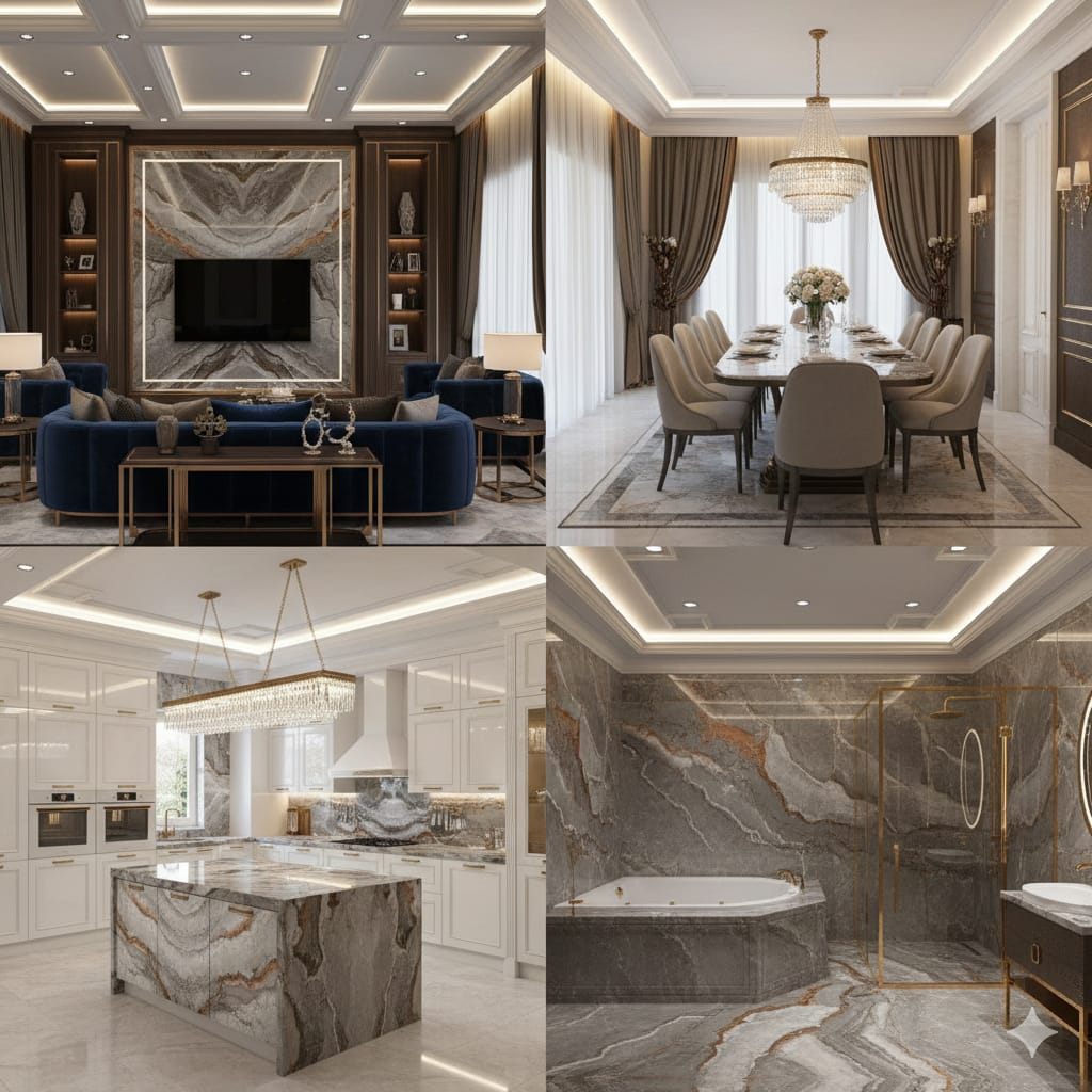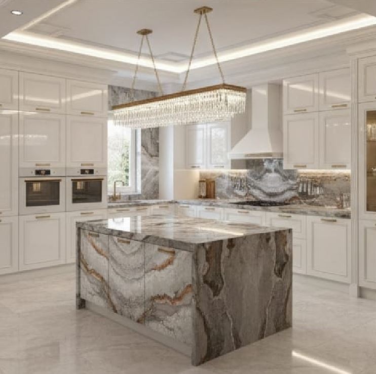 The Blue Roma Nuvolato Brazilian Marble is a breathtaking masterpiece of natural luxury, showcasing a dramatic blue-gray background with striking, white veining and subtle, wispy clouds of quartz that create a mesmerizing display of texture and movement. Its intense, dynamic beauty adds a touch of high-end sophistication and glamour to any space, perfect for those who crave a luxurious and refined aesthetic. With its polished finish and sweeping patterns, Blue Roma Nuvolato marble exudes opulence, refinement, and timeless elegance, transporting you to a world of luxury and wonder. Its beauty is both captivating and sublime.