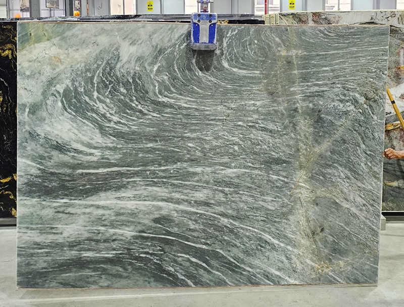 The Charlotte Green Brazilian Quartzite is a stunning masterpiece of natural luxury, showcasing a rich, vibrant green background with intricate, crystalline patterns that shimmer and sparkle like precious gemstones. Its bold, dynamic beauty and refined charm add a touch of luxury and sophistication to any space, perfect for those who crave a unique and eye-catching aesthetic. With its polished finish and captivating patterns, Charlotte Green quartzite exudes luxury, elegance, and natural wonder, transporting you to a world of tropical beauty and refined taste. Its beauty is both breathtaking and unforgettable.
