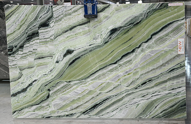 The Cipollino Nuvolato Italian Marble is a breathtaking masterpiece of natural luxury, showcasing a soft, creamy white background with delicate, wavy patterns of pale gray and gentle green, reminiscent of a serene Italian landscape. The polished finish adds a touch of sophistication and elegance, perfect for high-end interiors where luxury and refinement reign. This exquisite marble exudes classic elegance, warmth, and natural beauty, its subtle nuances and intricate patterns creating a sense of timeless sophistication and refinement. The Cipollino Nuvolato’s unique blend of soft hues and delicate veining transport you to a world of Italian grandeur and luxury, elevating any space to new heights of elegance and refinement. Its beauty is both captivating and unforgettable, a true masterpiece of nature’s artistry.