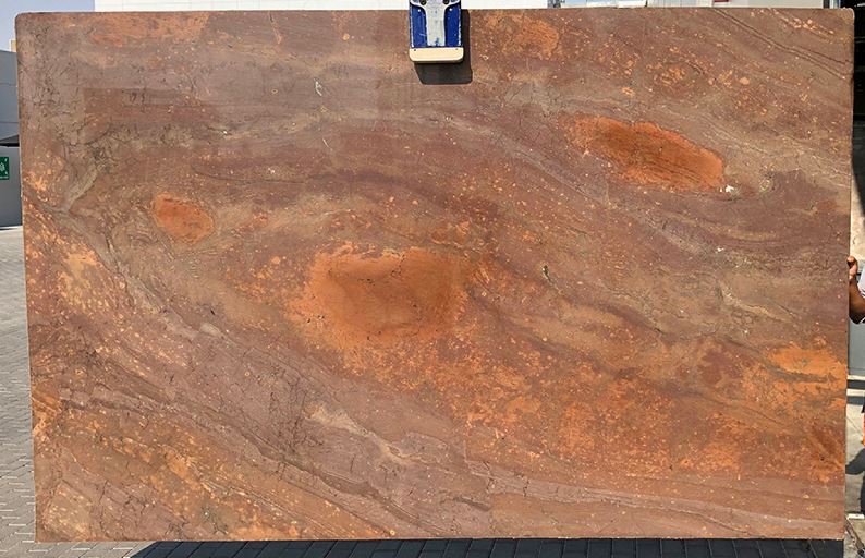 The Corten Ferro Brazilian Marble is a dramatic masterpiece of natural luxury, showcasing a deep, rich brown background with striking, bold veins of gold and rust hues, evoking the fiery depths of the earth. The polished finish adds a touch of sophistication and elegance, perfect for high-end interiors where luxury and drama reign. This exquisite marble exudes warmth, intensity, and natural beauty, its bold patterns and earthy tones creating a sense of opulence and grandeur. The Corten Ferro’s unique blend of warm, metallic hues and majestic veining transports you to a world of raw, natural beauty, elevating any space to new heights of luxury and sophistication.