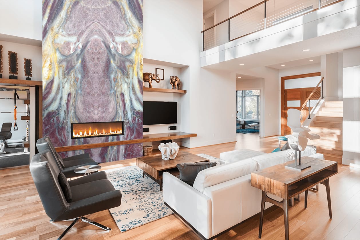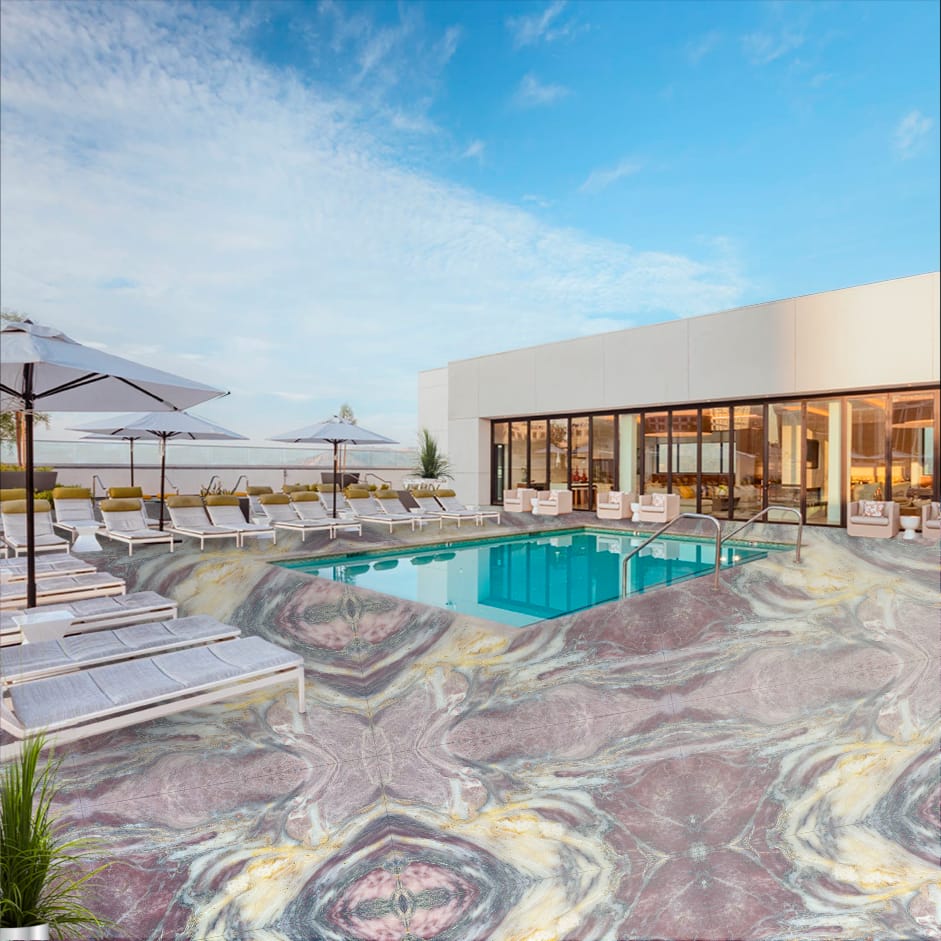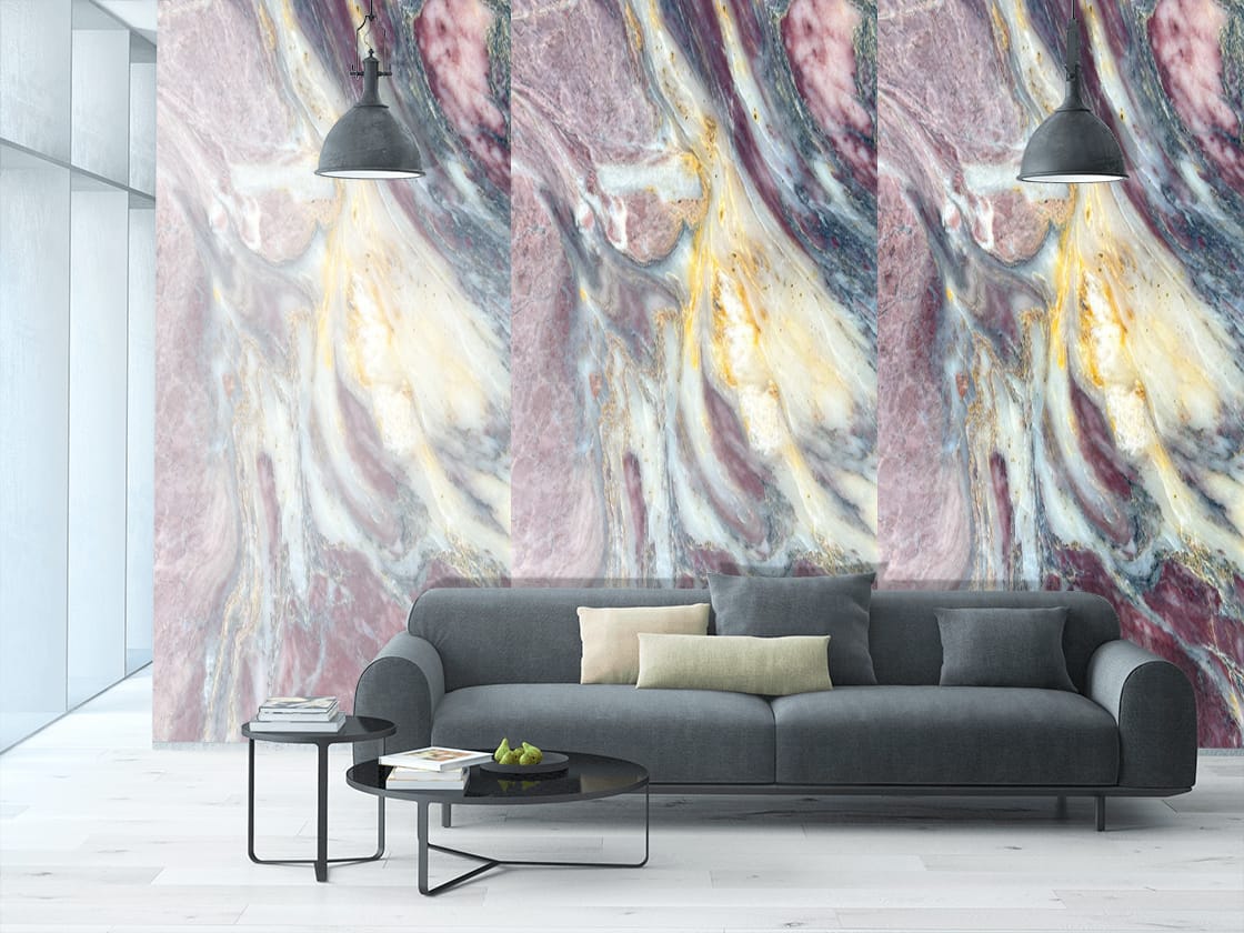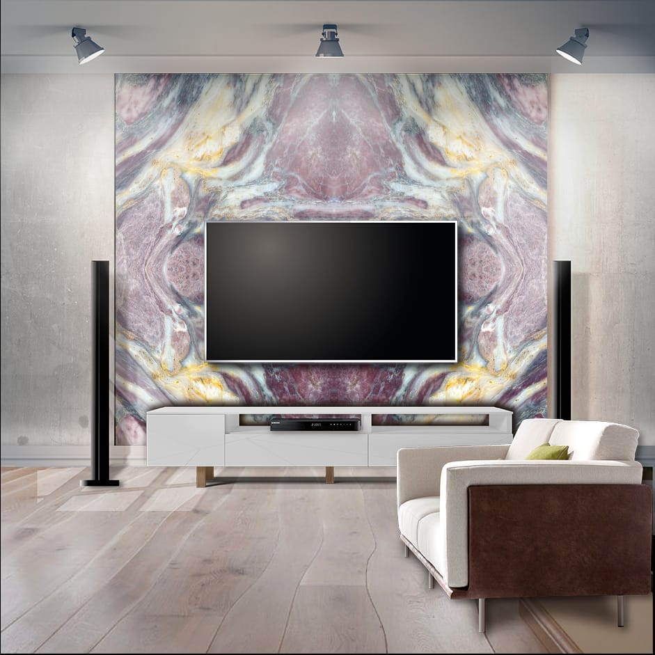 The Fico Di Amalfi Indian Quartzite is a breathtaking masterpiece of natural luxury, showcasing a rich, dark gray background with intricate, swirling patterns of gold, cream, and soft brown hues, reminiscent of a starry night sky. The polished finish adds a touch of sophistication and elegance, perfect for high-end interiors where luxury and refinement reign. This exquisite quartzite exudes drama, elegance, and natural beauty, its intricate patterns and subtle nuances creating a sense of wonder and awe. The Fico Di Amalfi’s unique blend of dark, mysterious tones and shimmering metallic hues transports you to a world of opulence and sophistication, elevating any space to new heights of luxury and refinement.