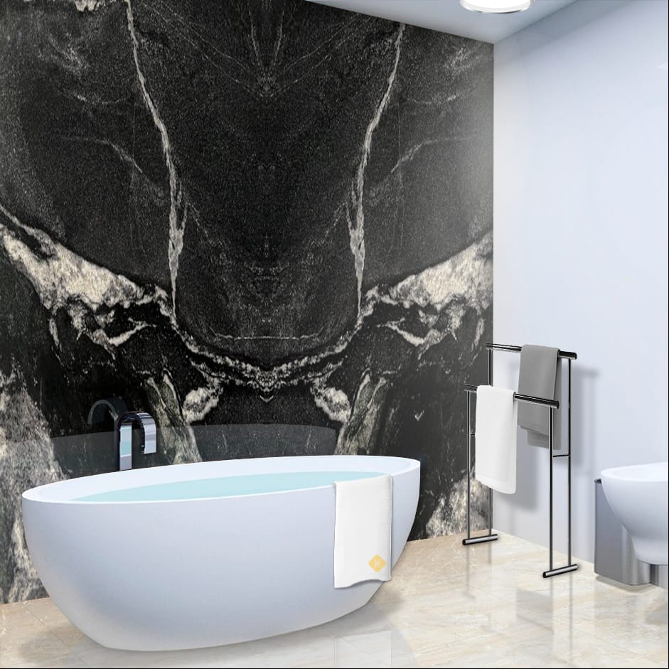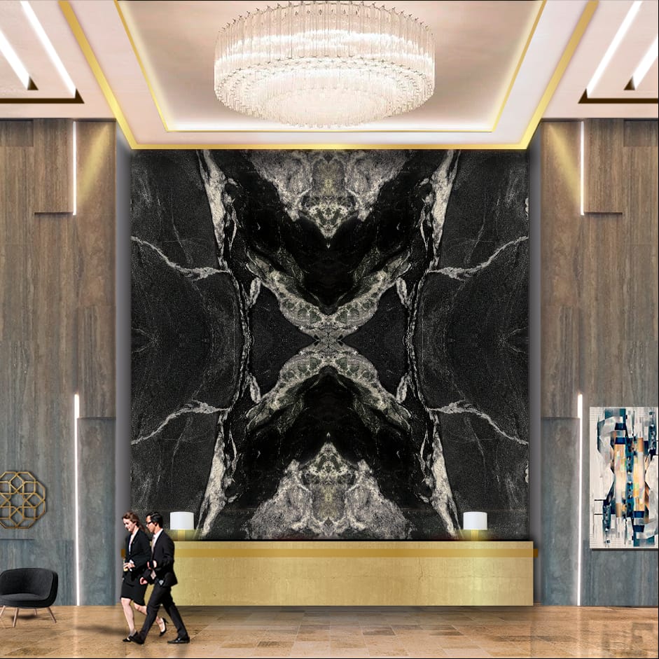 The Fusion Black Brazilian Marble is a stunning embodiment of natural luxury, featuring a dramatic black background with bold, white and gold veining that creates a mesmerizing, dynamic effect. Its intense, high-contrast beauty adds a touch of modern sophistication and high-end style to any space, perfect for those who crave a bold statement. Fusion Black infuses any setting with an aura of edgy refinement, classic charm, and enduring luxury that exudes confidence, elegance, and unparalleled grandeur, making it a true showstopper in any setting. Its unique blend of colors and patterns adds depth and character, perfect for discerning tastes.